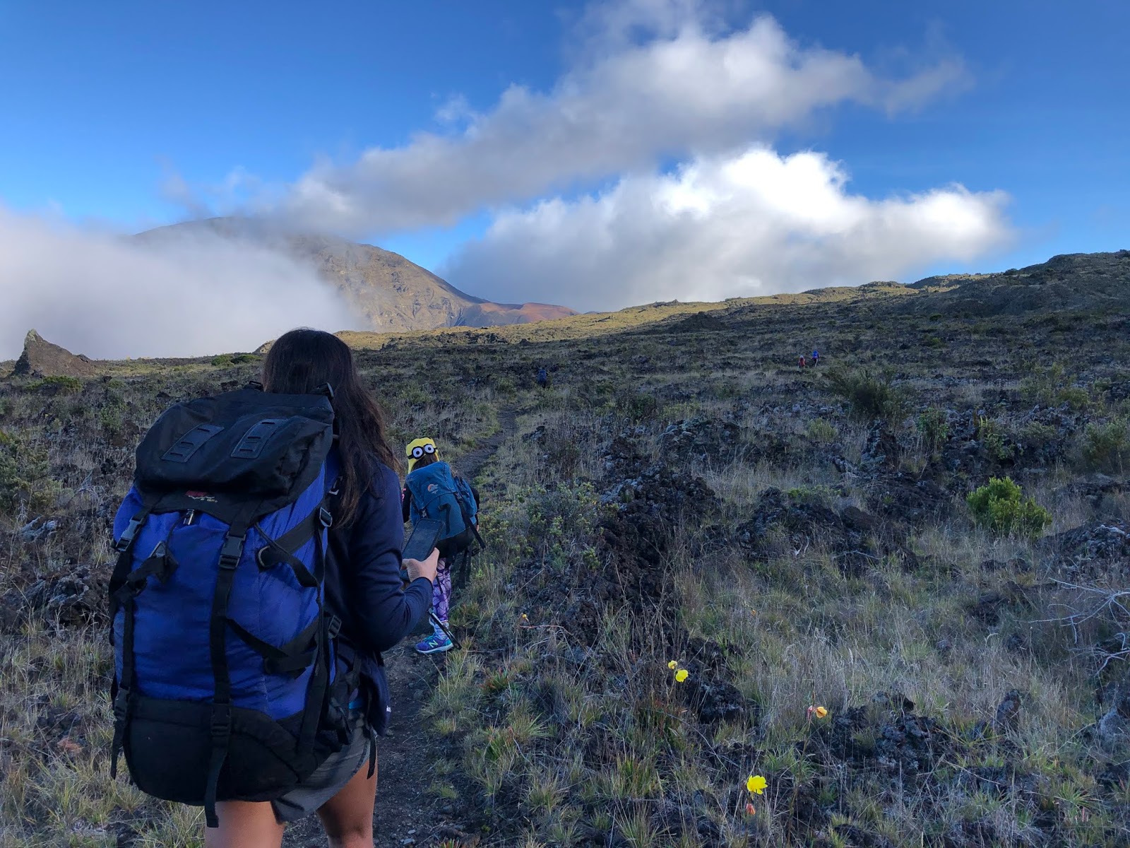 小さな子供も自分の担当の重いバックパックを背負ってしっかりハイキングしています。