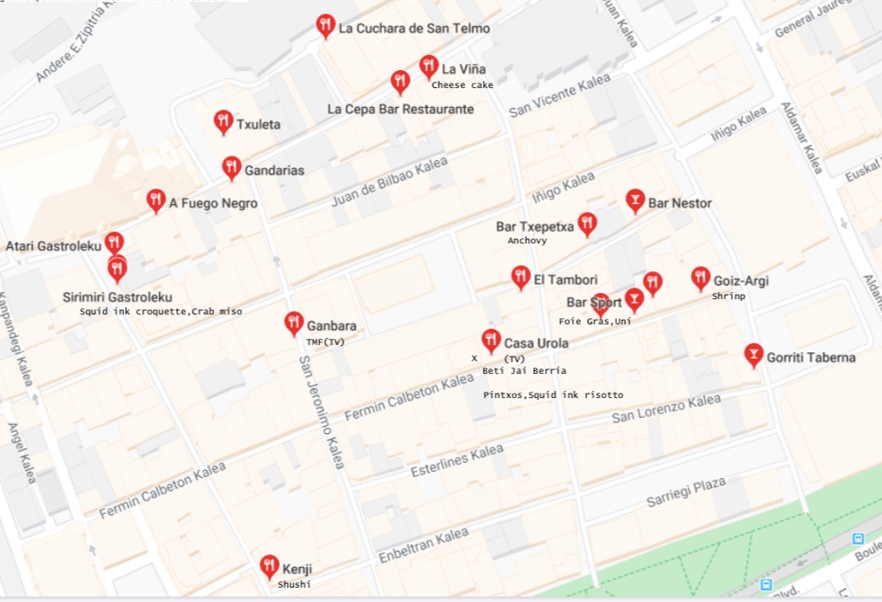 *バル巡り(サンセバスチャンに毎年行かれている私のハワイ物件のテナント様にどこで何が美味しいかお聞きしてマップに記入、笑)